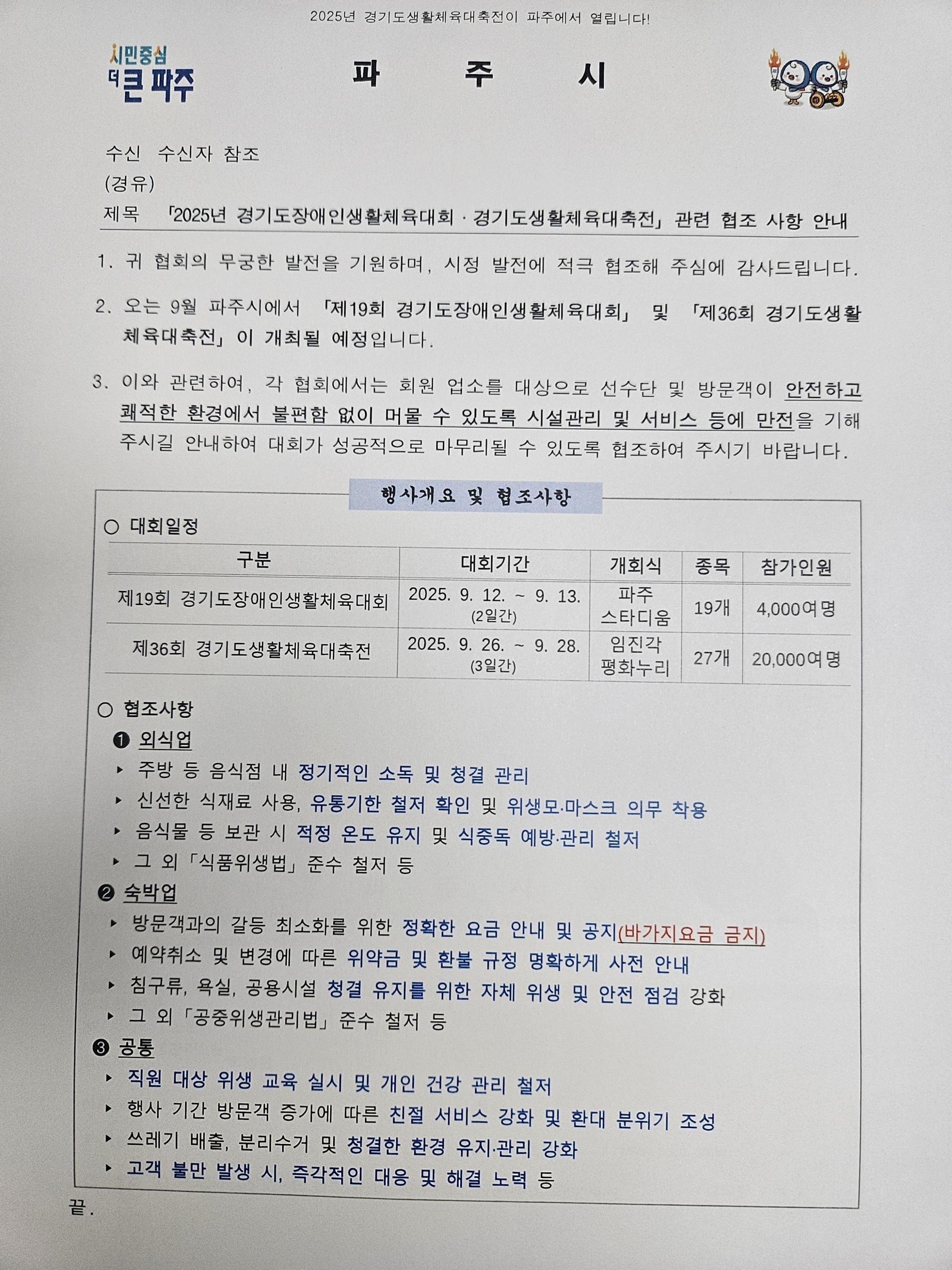 2025년 <경기도장애인생활체육대회, 경기도생활체육대축전 >안내