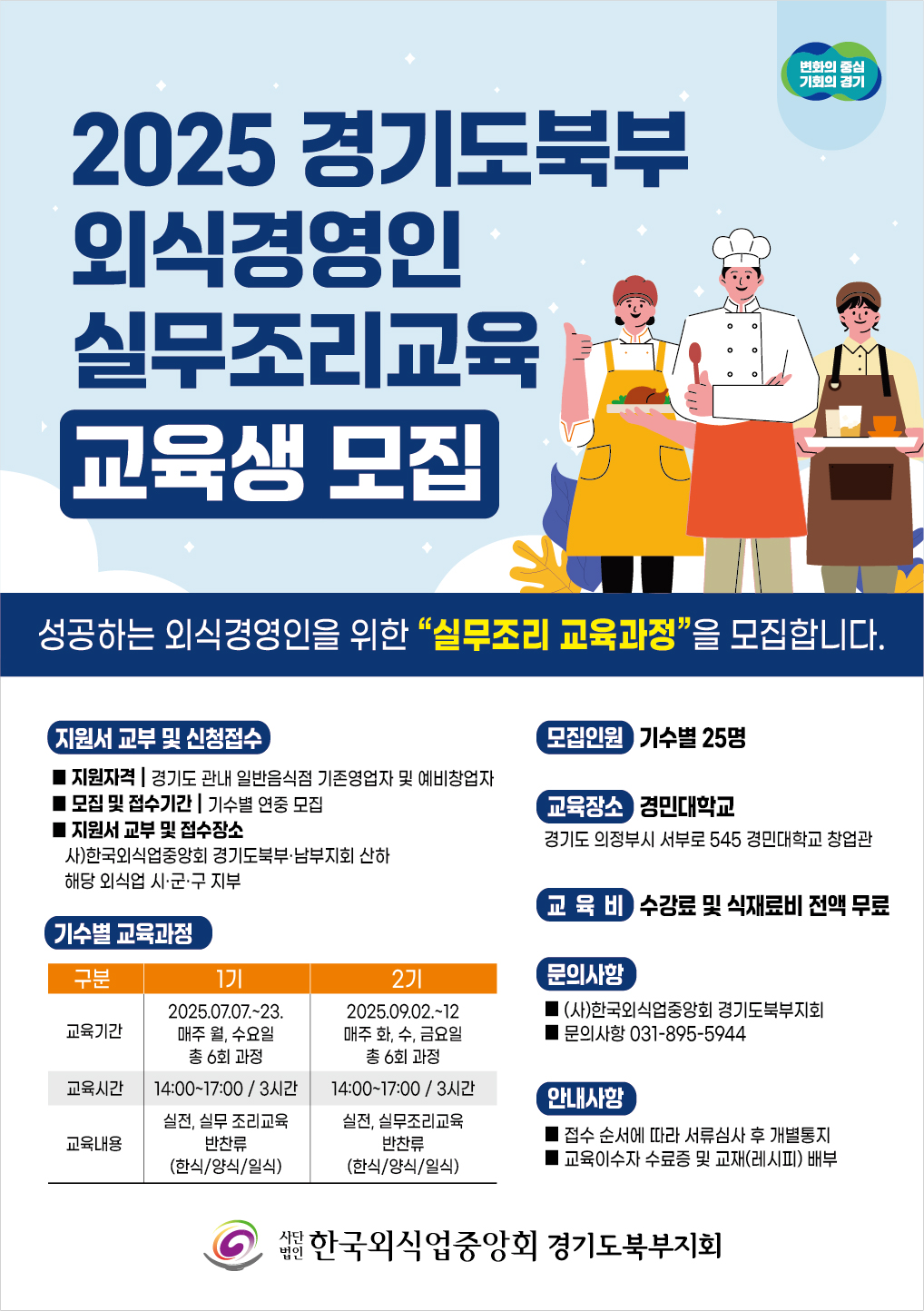 2025. 2기 경기도북부 외식경영인 실무조리교육 모집안내